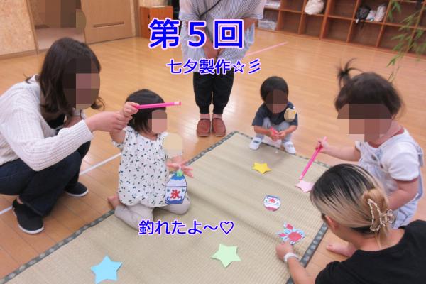 織姫彦星の飾りがついた短冊を親子で作りました。大小の星をのりで貼り、思い思いのお顔を描いたり・・・☆ 織姫彦星の周りには指スタンプをしてキラキラの天の川を描きました!最後にお母さんに願い事を書いてもらいました!ほっこりする願い事がたくさん書かれていました♡ 皆の願いが叶いますように・・・☆彡 製作のあとは幼稚園で取った大きな笹に飾り付けをしました。マグネットがついた釣り竿で星や魚、かき氷、カニなど季節を感じる飾りを狙って・・・「釣れた~♪」と子ども達は大喜び♡ 飾り付けも頑張ってくれましたね!!