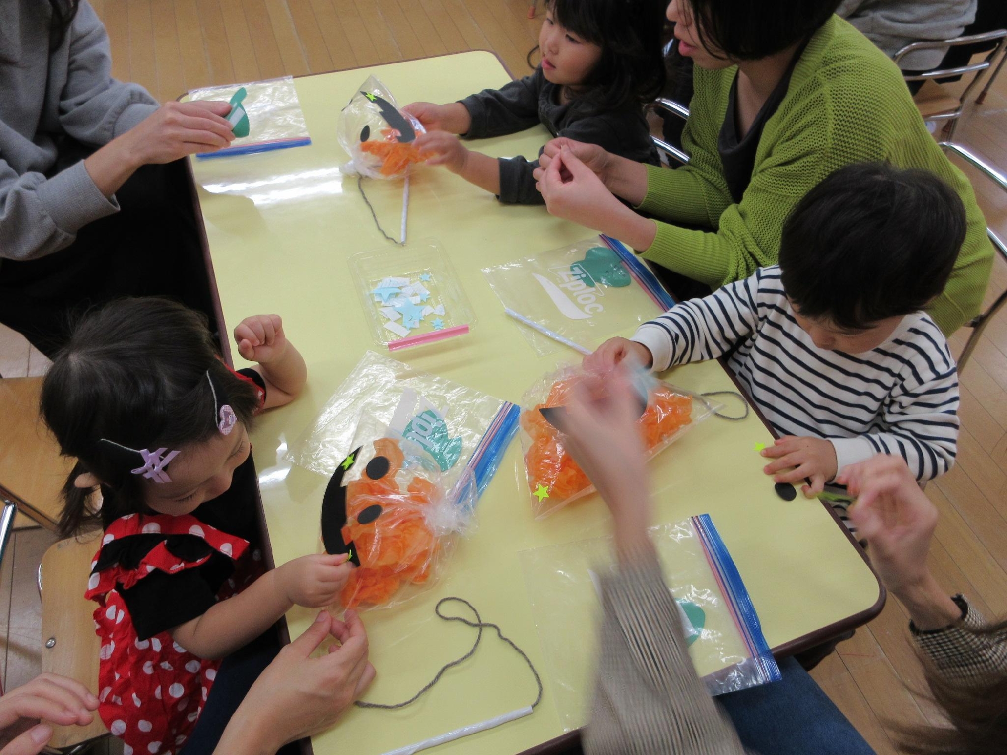ハロウィンの絵本を読んだ後は、カボチャのランタン作り!