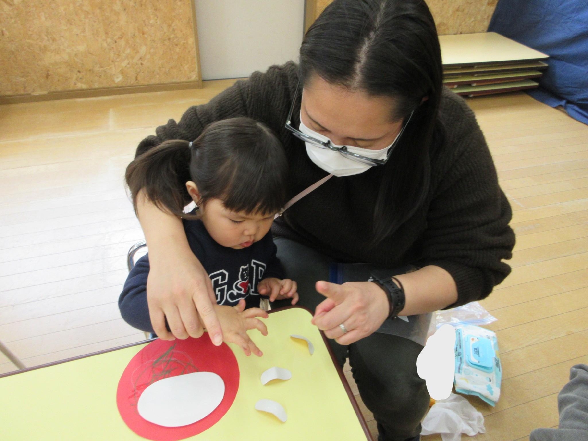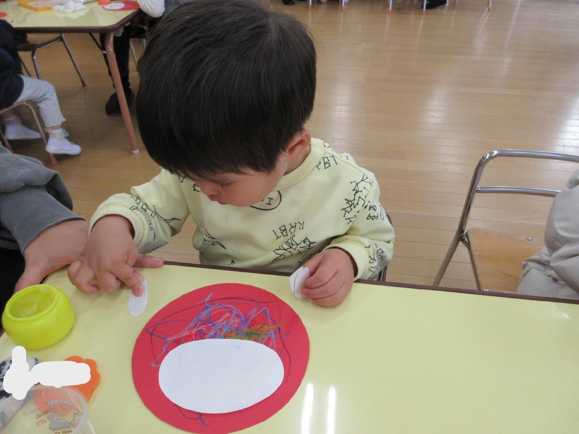 描いたり、のりで貼ったり・・一人で取り組む姿も多くみられるようになっていました!