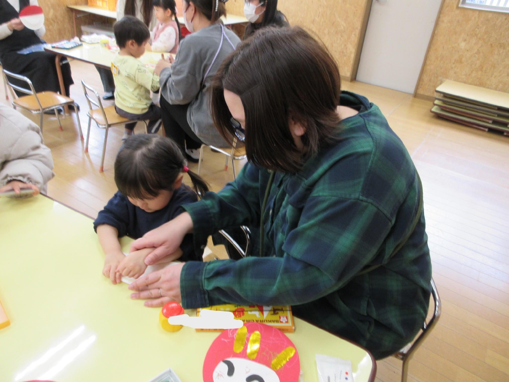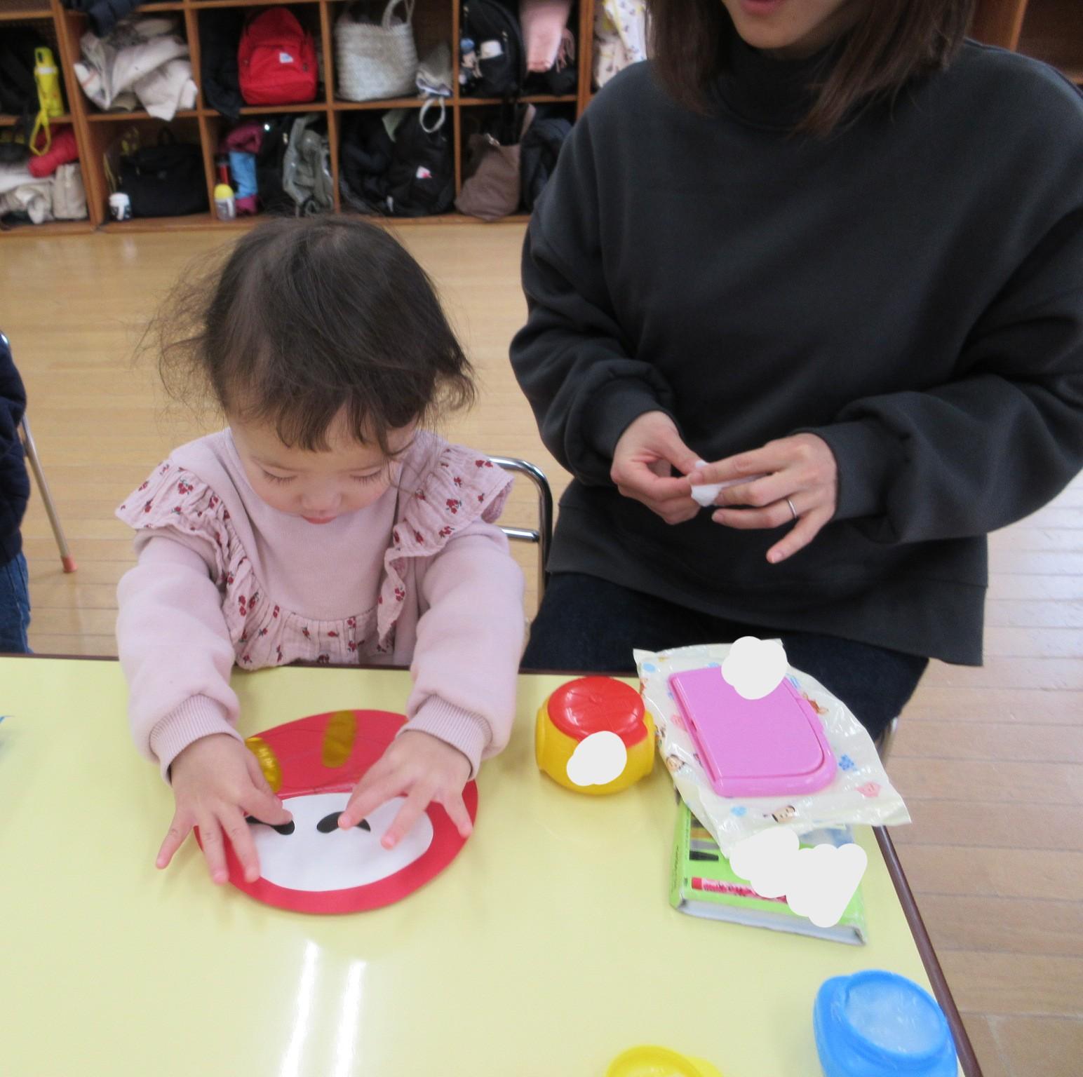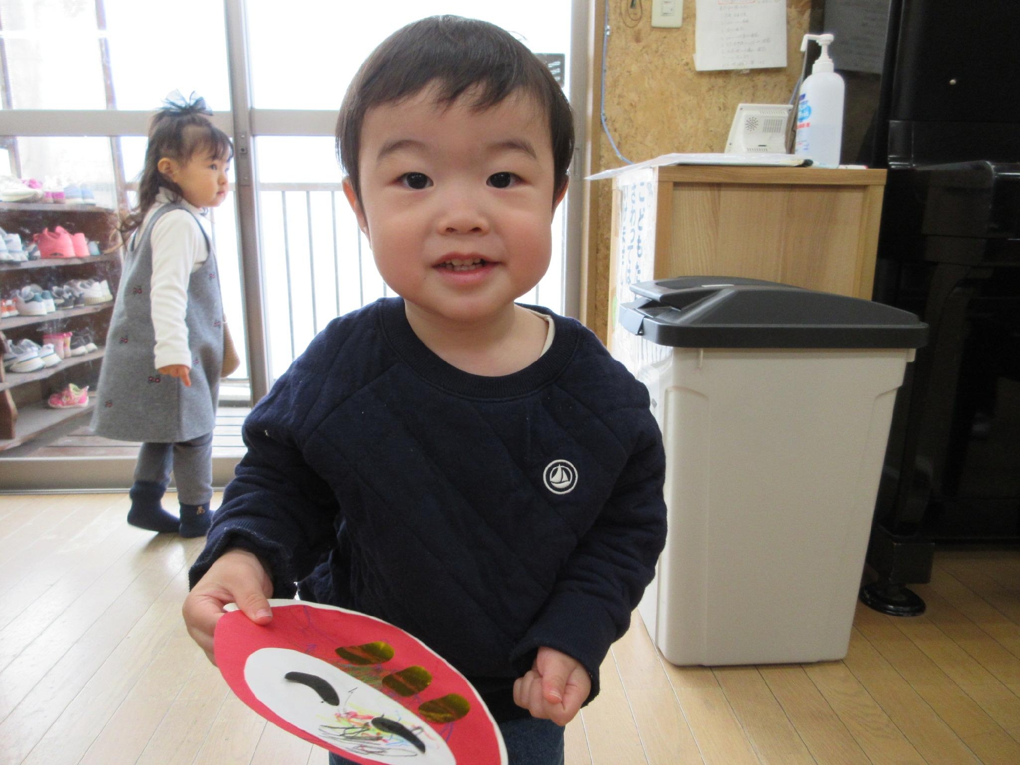思い思いのだるまさんが完成した後は、ゆらゆらして遊んで、先生に見せに来てくれるお友達も!