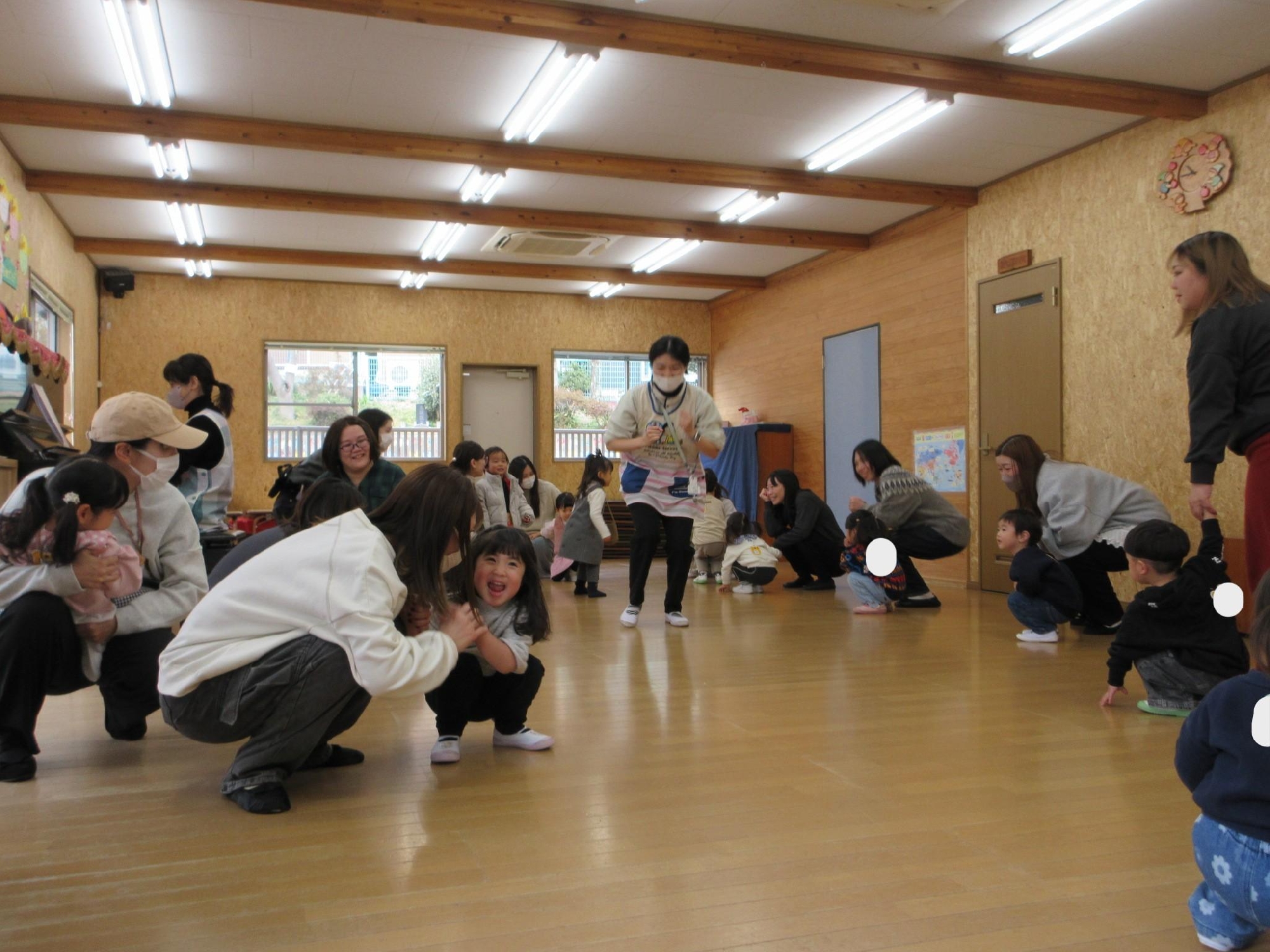 お母さんと一緒にだるまさんになりきって揺れたり、