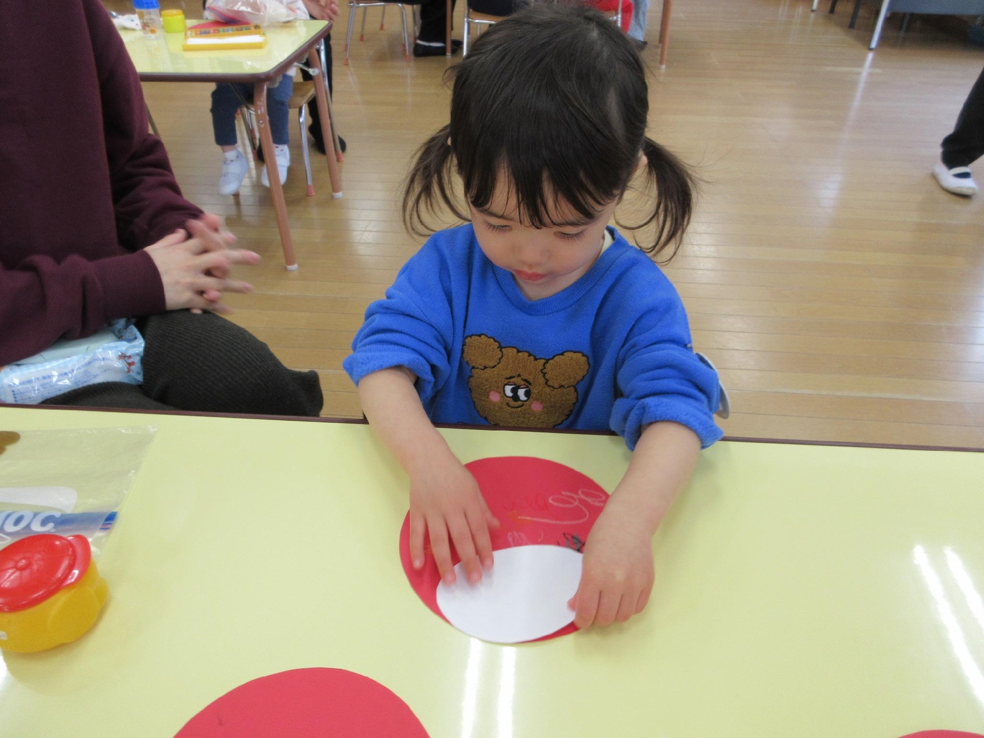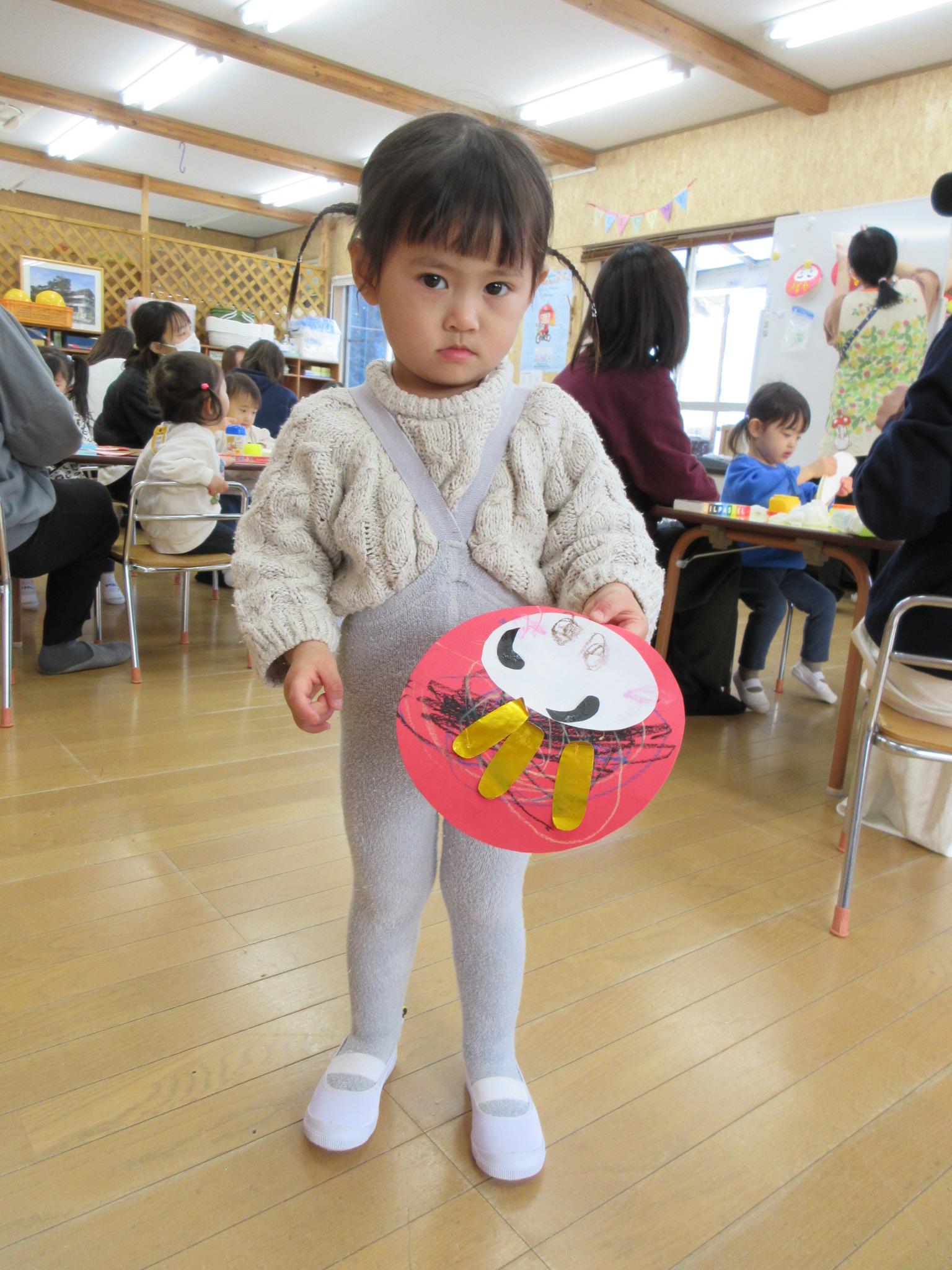 思い思いのだるまさんが完成した後は、ゆらゆらして遊んで、先生に見せに来てくれるお友達も!